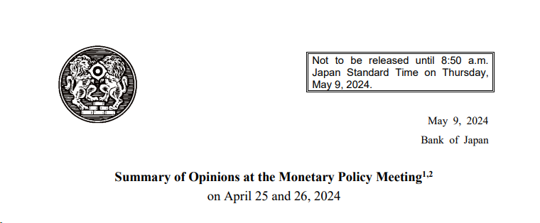 5月9日,日本央行发布4月份货币政策会议摘要。摘要显示,委员们正在密切关注日元疲软对通胀的影响,日元过快贬值可能导致进口商品价格提升,刺激通胀并导致更快加息。